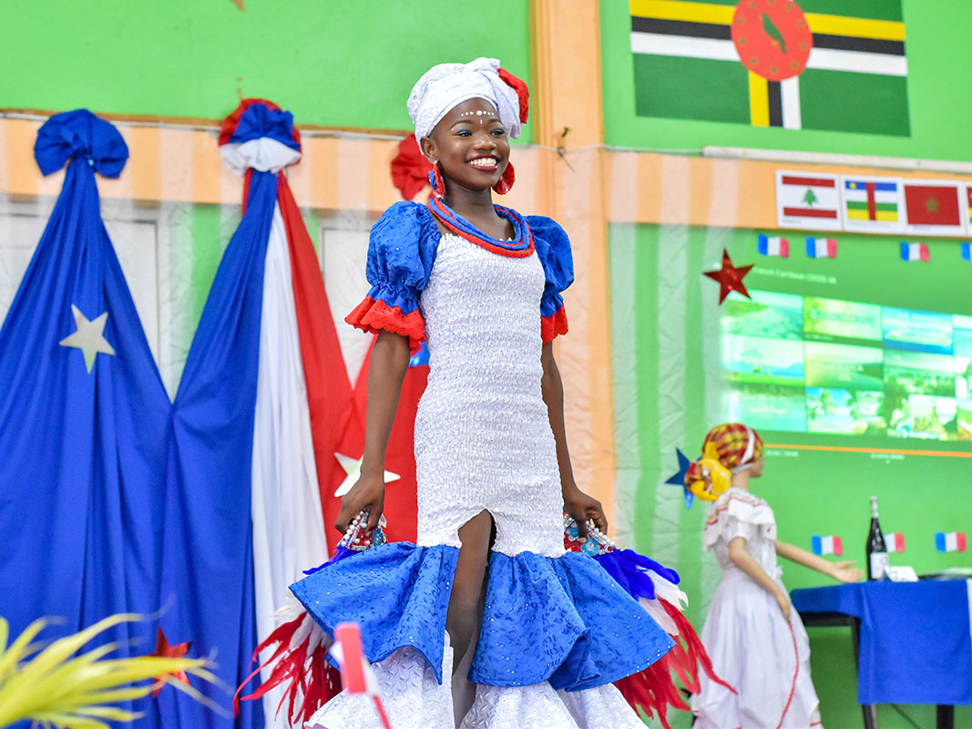 Both teachers and students of the host school, the Goodwill Primary, were dressed in the colours of the French Flag as a means of highlighing this significant French emblem, while each of the primary schools, including the host school, marvellously displayed cultural aspects of the various Caribbean Francophonie islands that they each represented.